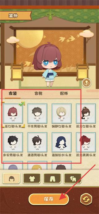 2、先进入装扮界面,根据需求装扮角色,点击保存完成装扮。