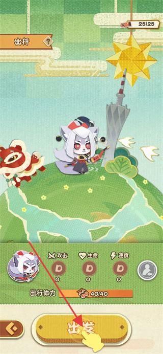 3、装扮完成后进入出行界面,点击出发按钮,进入战斗关卡。