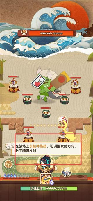 4、长按并拖动角色,调整发射方向,松手即可发射角色攻击敌人。