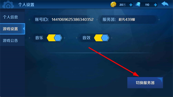 3、在游戏设置界面中,找到并点击切换服务器按钮选项。