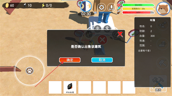 4、若建筑不再需要,可选择出售,点击确定确认出售,回收资源用于其他建设。