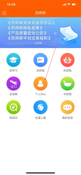 1、打开药师帮App的首页,点击个人中心选项,进入个人中心页面。