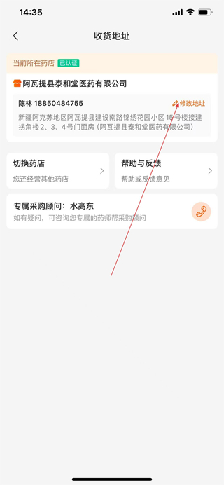3、在收货地址页面点击修改地址选项,进入地址编辑页面。
