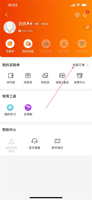 1、打开药师帮APP,点击个人中心,进入个人中心页面。