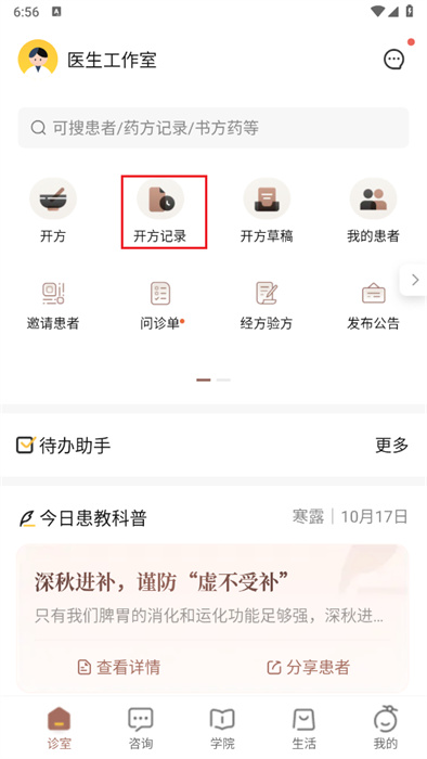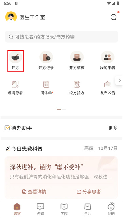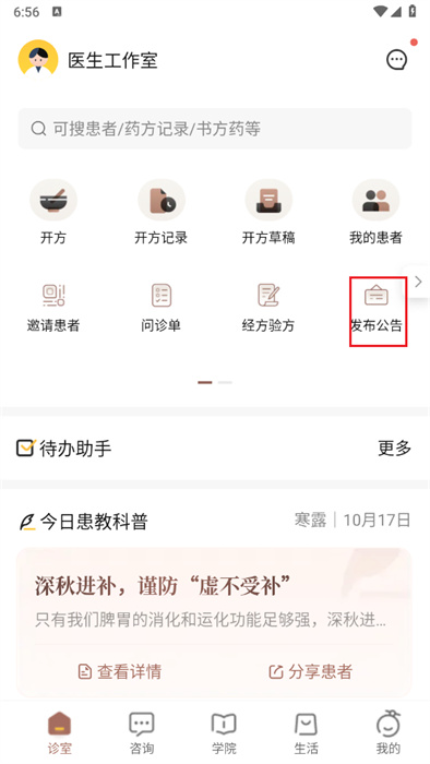 3、屏幕下方有一个【资讯】栏,在该栏中,医生将可以和自己的患者进行沟通;