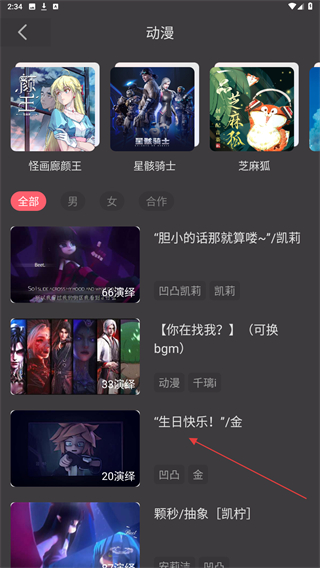 2、进入配音的页面内,选择并点击动漫的按钮。