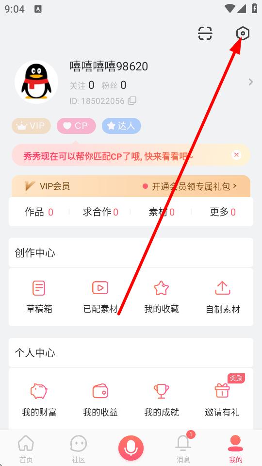 1、在配音秀首页,点击右下角我的选项,进入个人中心界面。