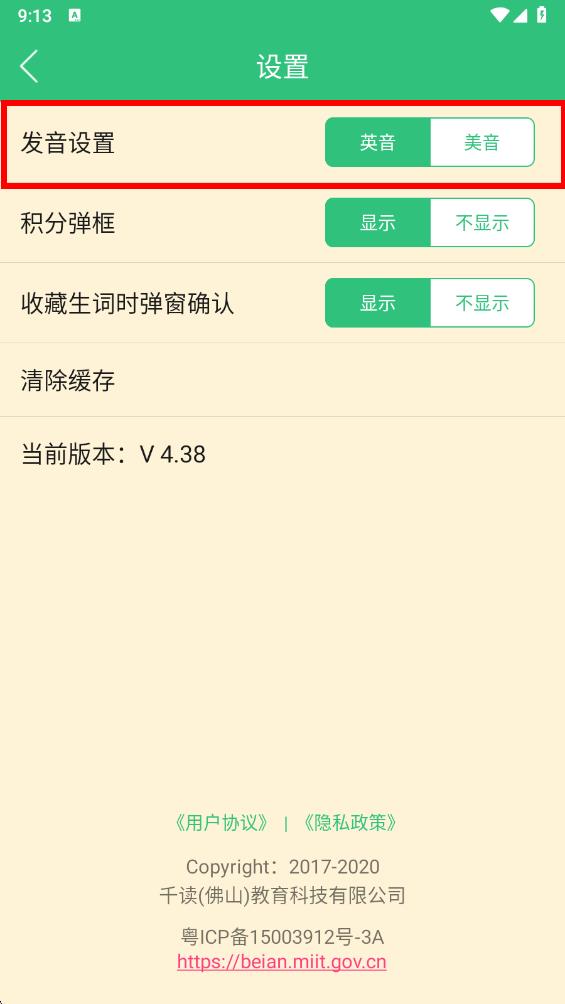 4、根据需求点击英音或美音对应的按钮,即可完成发音设置。