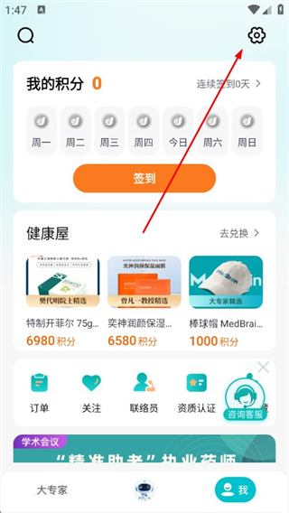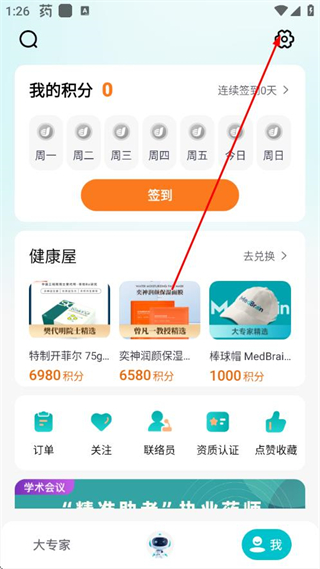 2、在我的页面点击右上角的设置图标,进入设置页面。