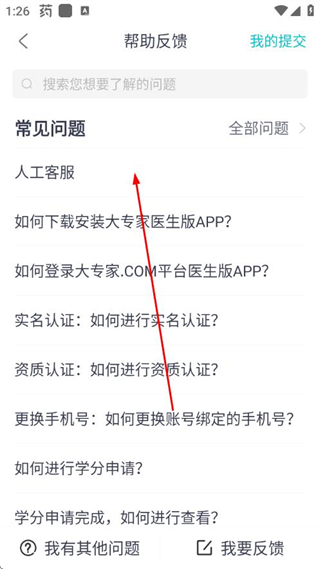 4、在帮助反馈页面点击人工客服选项,进入问题详情页面。