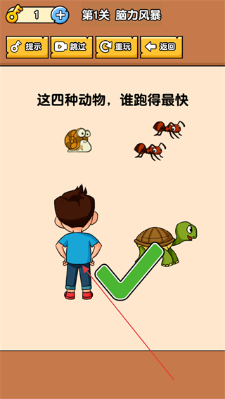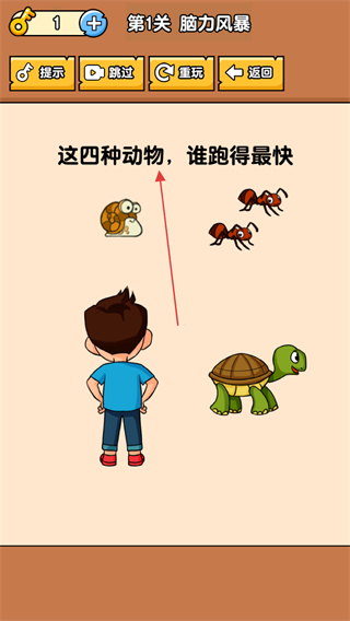 1、点击开始游戏按钮,进入第1关脑力风暴关卡。