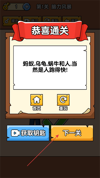 4、通关后点击下一关按钮,继续挑战后续关卡。