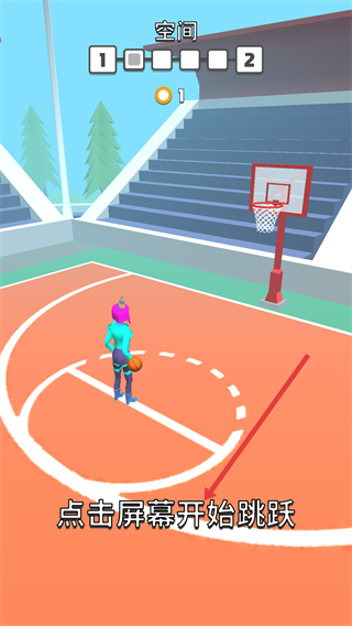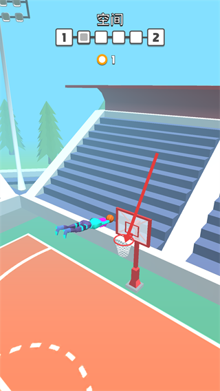 3、角色完成跳跃后,会向篮筐方向运动并完成灌篮操作,推进本关卡的进程。