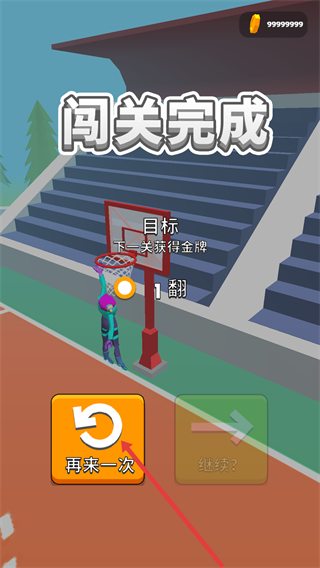 4、闯关完成后,点击【再来一次】按钮,可重新挑战当前关卡,再次体验该关的灌篮玩法。