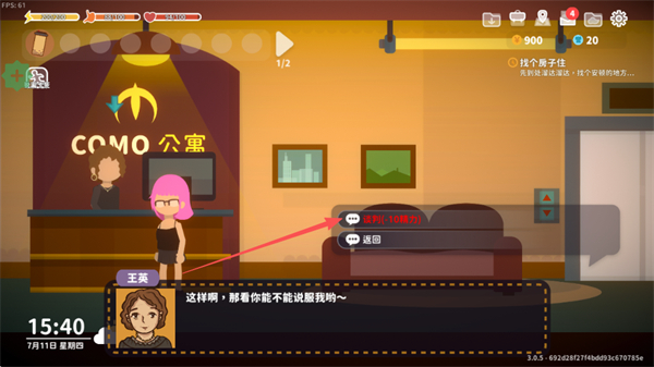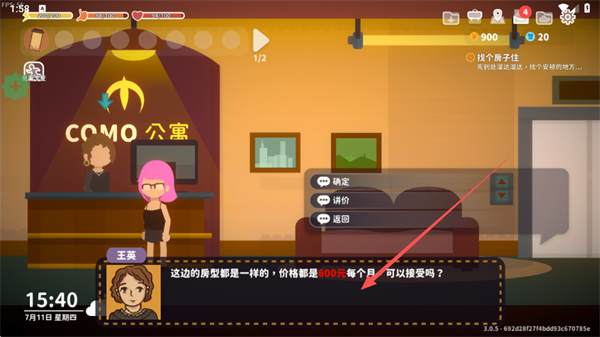 1、与公寓前台交互,查看房租信息,选择确定进入议价流程。