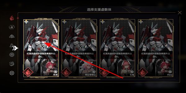 2、支援虚数体选择界面,挑选对应的虚数体,借助其加成效果,为后续战斗储备辅助战力。
