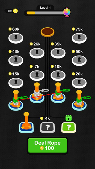 3、继续处理剩余立柱上的绳索,将其合理连接或调整,积累对应数值推进关卡进度条。