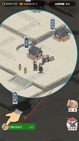 1、点击招募按钮,招募弟子兔子,扩充帮派成员。
