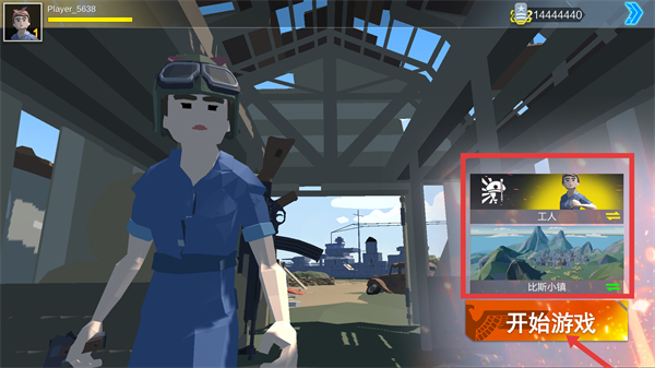 1、在游戏角色-地图选择界面,选定【工人】角色与【比奇小镇】地图后,点击【开始游戏】进入对局。