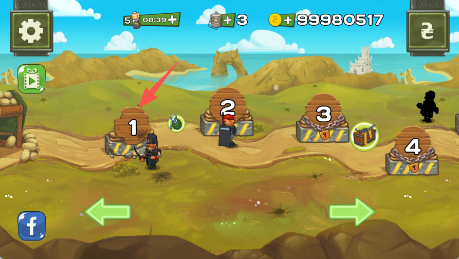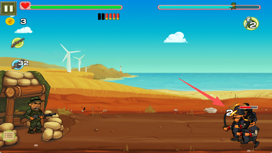 3、消灭敌人,完成关卡收集金币。