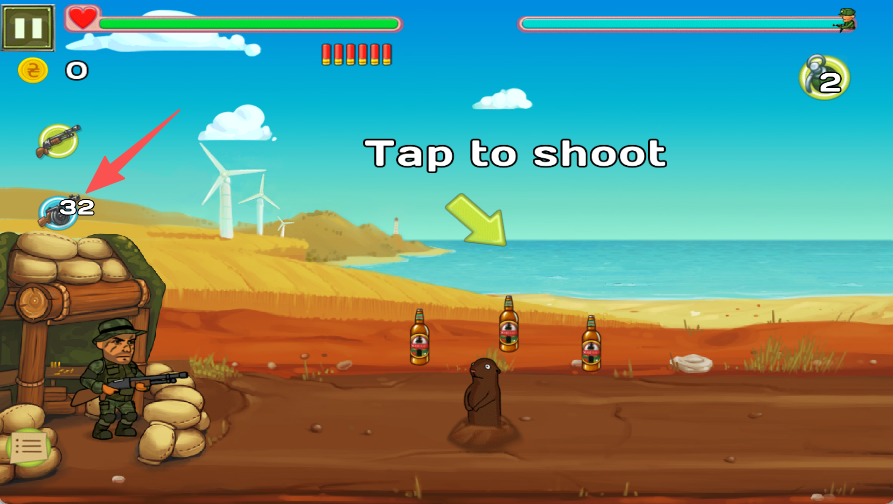 2、点击屏幕,射击敌人与目标。