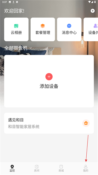 1、启动和目摄像头的应用APP,进入首页内点击右下角我的按钮。