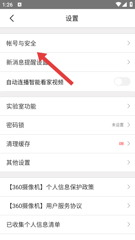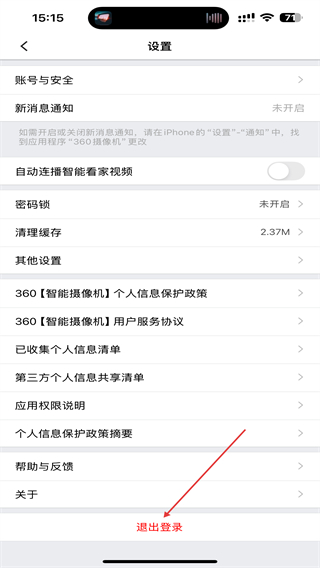 4、在注销账号页面,点击注销360摄像机账号选项,按提示完成后续注销操作。