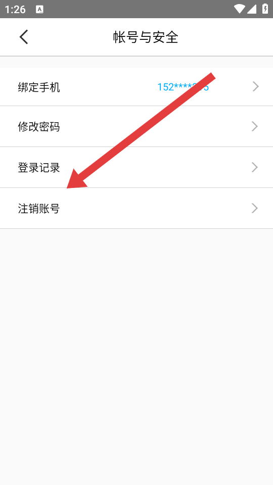 3、在账号与安全页面,点击注销账号的选项,进入注销账号选择界面。
