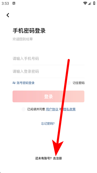 2、在登录界面,点击去注册,进入注册页面。