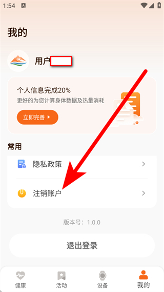 2、在我的页面,点击注销账户,进入注销确认界面。