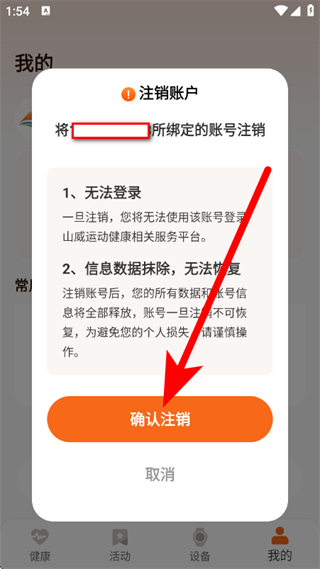 3、在注销账户的提示界面,点击确认注销,完成账号注销操作。
