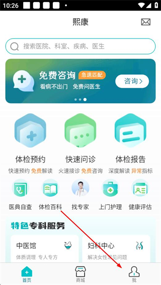 1、在体检管家app的首页,点击底部我选项,进入个人中心页面。