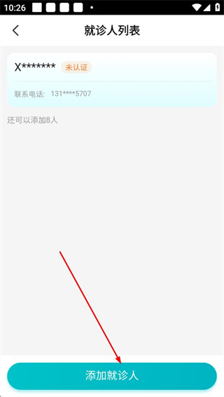 3、在就诊人列表页面点击添加就诊人,进入添加就诊人页面。