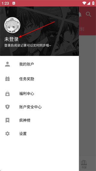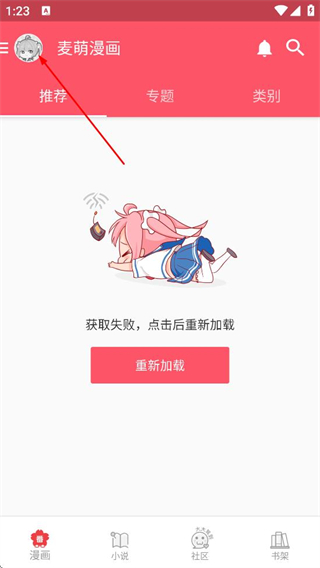 1、在麦萌漫画首页,点击左上角的头像,进入个人菜单页面。