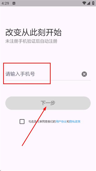 1、在使用协议隐私政策弹窗中点击同意按钮,进入登录页面。