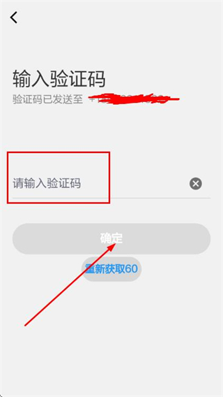 3、在验证码输入框中填写收到的验证码,点击确定完成账号的登录操作。