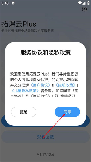 1、在服务协议和隐私政策弹窗中,点击同意,进入该APP。