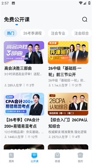 整合海量财经职业教育公开课程,涵盖初级会计、税务师考级核心内容,构建系统化学习体系,知识点覆盖全面,讲解通俗易懂,助力用户循序渐进积累知识。