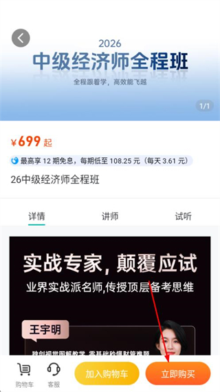 3、在课程详情页,点击立即购买按钮,若未登录触发登录页面。