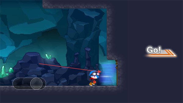 4、跳跃至平台,瞄准绿色目标,点击攻击发起攻击,推进关卡。