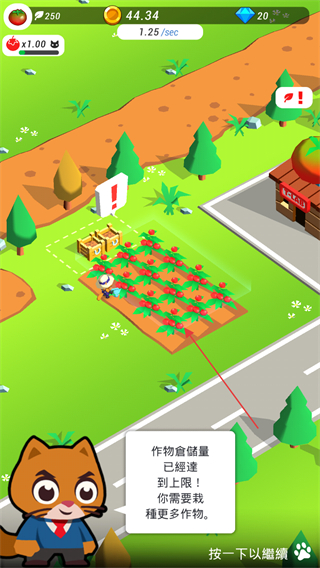 3、当作物种植量达到上限时,根据提示解锁更多农田,扩大种植规模。