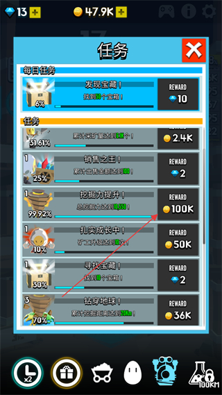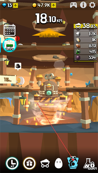 4、利用奖励资源继续升级钻头、机体等部件,提升挖掘效率,推进更深地层的挖掘。