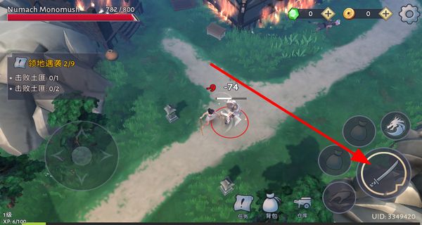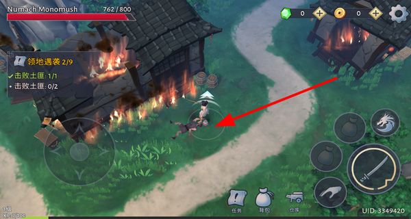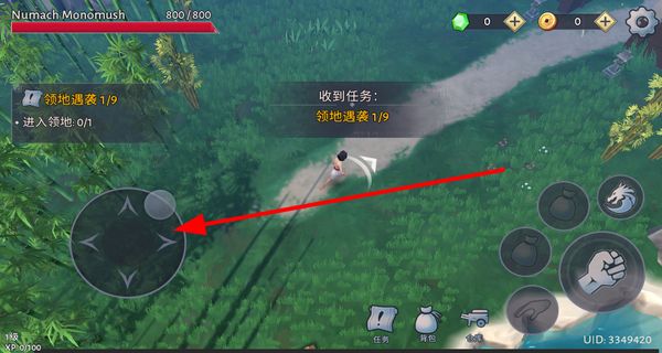 1、通过界面中的移动控件操控角色移动,前往指定区域,推进领地遇袭相关的任务。