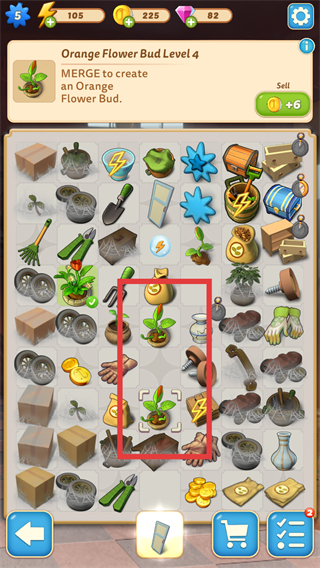 2、进入游戏场景之后,找到两个相同的种子苗将其合并。