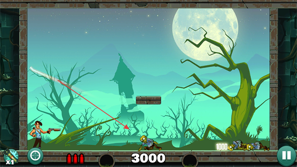 2、利用子弹的弹射效果,攻击多个僵尸,提升得分效率。