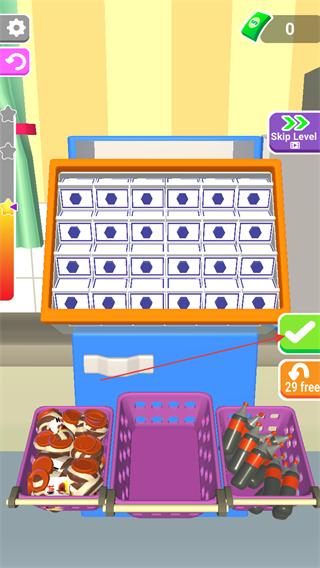 4、关卡场景层层递进,从迷你小冰箱到双开门大容量冰箱,从简单的单一收纳盒到分层分区的复杂布局,关卡难度逐步提升,同时解锁不同风格的冰箱皮肤与收纳配件。