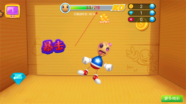 2、控制角色攻击,触发暴击效果,收集钻石等道具。