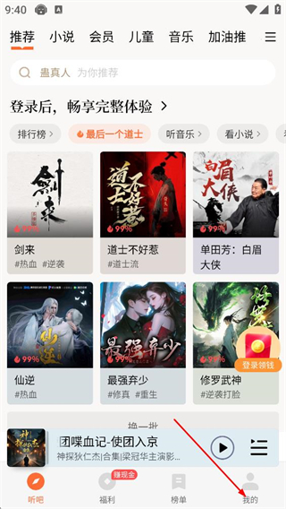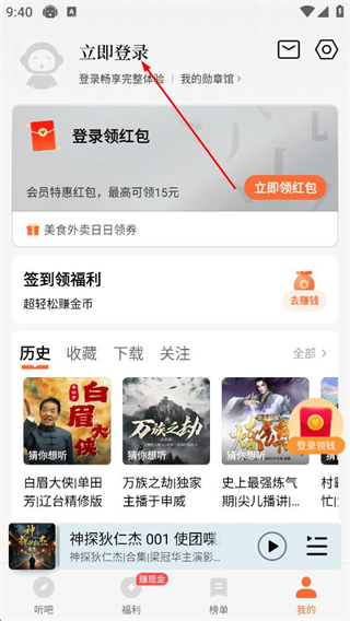 1、在该听书APP首页,点击底部的我的选项,进入个人页面。