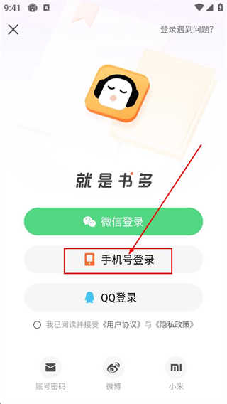 3、在登录选择界面,点击手机号码登录选项,进入手机号登录页面。