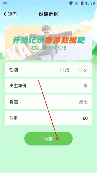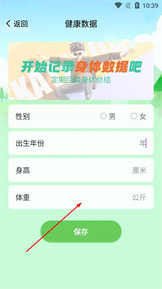 2、进入健康数据页面,找到体重输入框并修改数值。